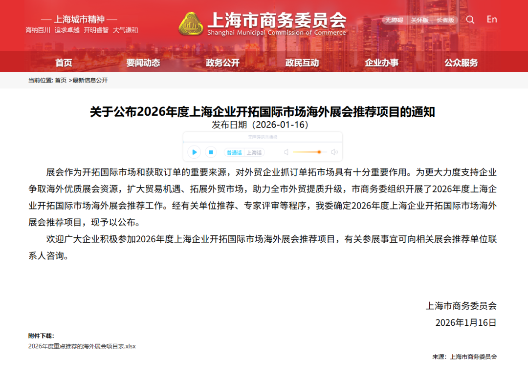 近日,上海市商务委员会正式发布2026 年度重点推荐海外展会项目名单,其中医疗医药类 22 场重磅入选,为计划出海的中国医疗企业,送上“政策护航 + 市场拓新”的双重红利!