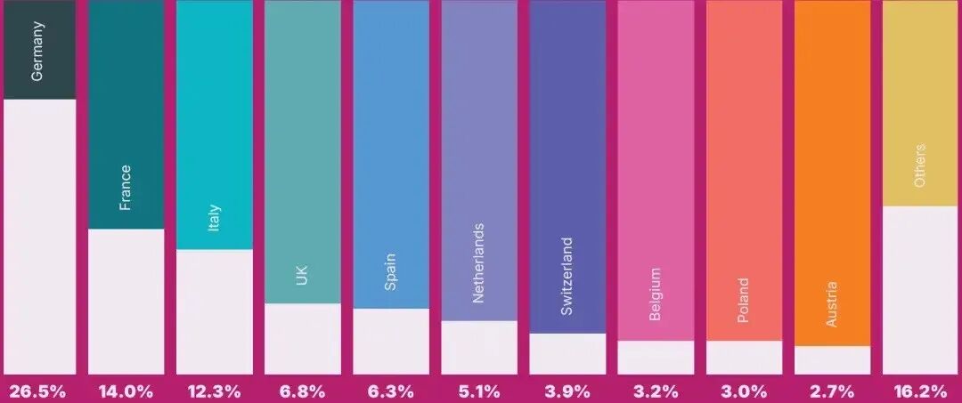 作为欧洲医疗器械及技术领域的核心市场,德国以高品质、创新性医疗技术闻名于世。医疗支出占其国民生产总值的11.7%,医疗技术产业更是德国经济的重要支柱。数据显示,2024年德国医疗器械市场规模已达4673亿美元,预计到2028年将增长至6858亿美元,年复合增长率(CAGR)为5.30%;其中,德国医疗器械和体外诊断市场分别占据欧洲整体市场的26.4%和30.3%的份额。
